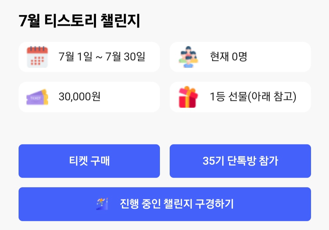챌린지에 도전하기 위해서는 티켓을 3만원에 구매를 하셔야 합니다.