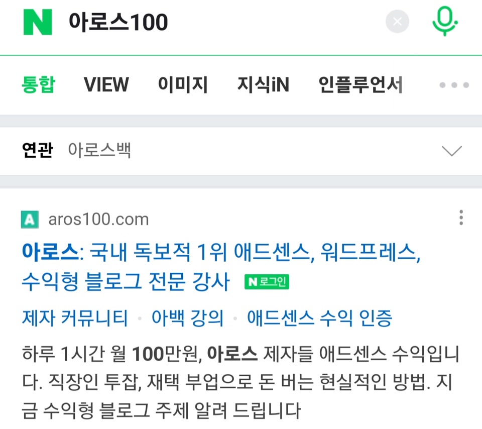 유튜브로 구글애드센스에 관한 내용을 보다가 알고리즘이 알려준 아로스100.