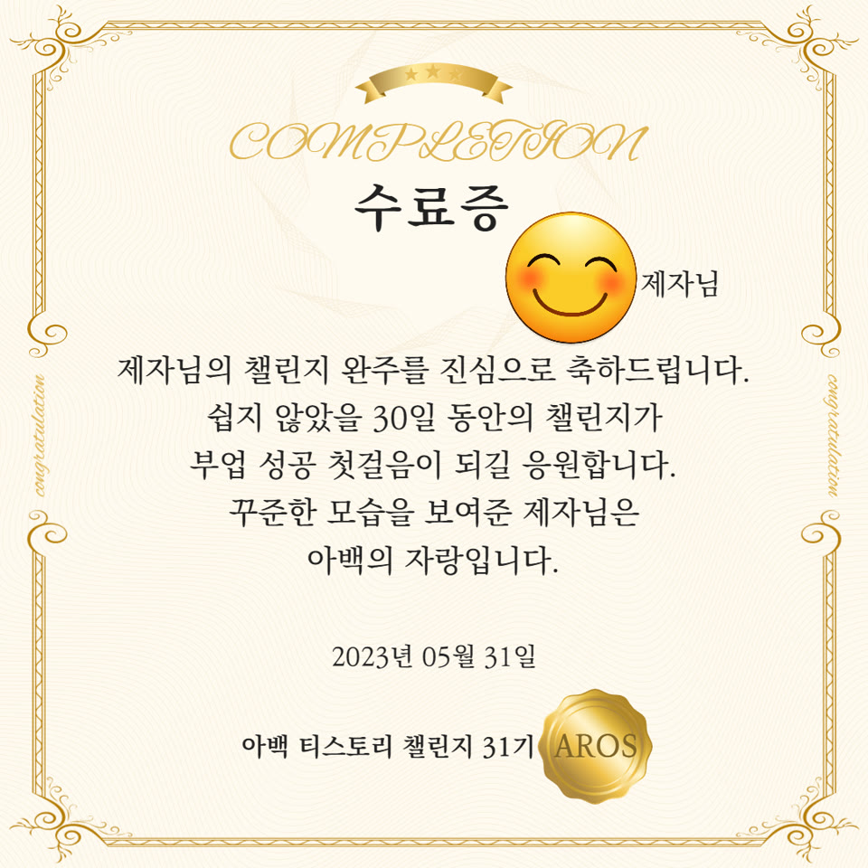 3. 아백 티스토리 챌린지 수료증
