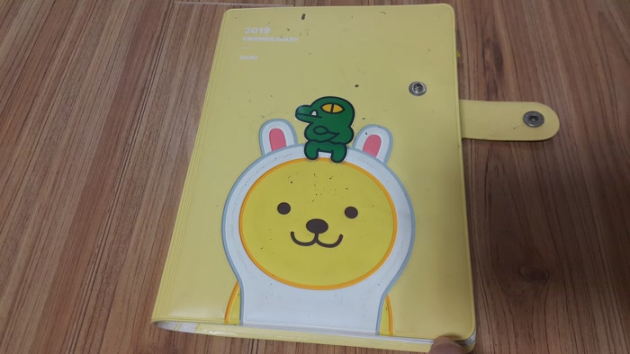 2019년 두 아이들과 함께한 다이어리이네요. 학교장상 선물로 카카오프렌즈 다이어리를 받아왔어요. 학교 선생님의 센스 있는 부상이었어요.