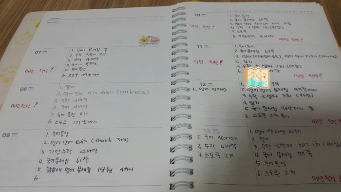 아이들이 초등학생이다 보니 쉽고 간단한 스케줄러를 사는 것이 좋아요. 적을 것이 많은 스케줄러는 아이들에게 부담을 줄 수 있기 때문이에요.