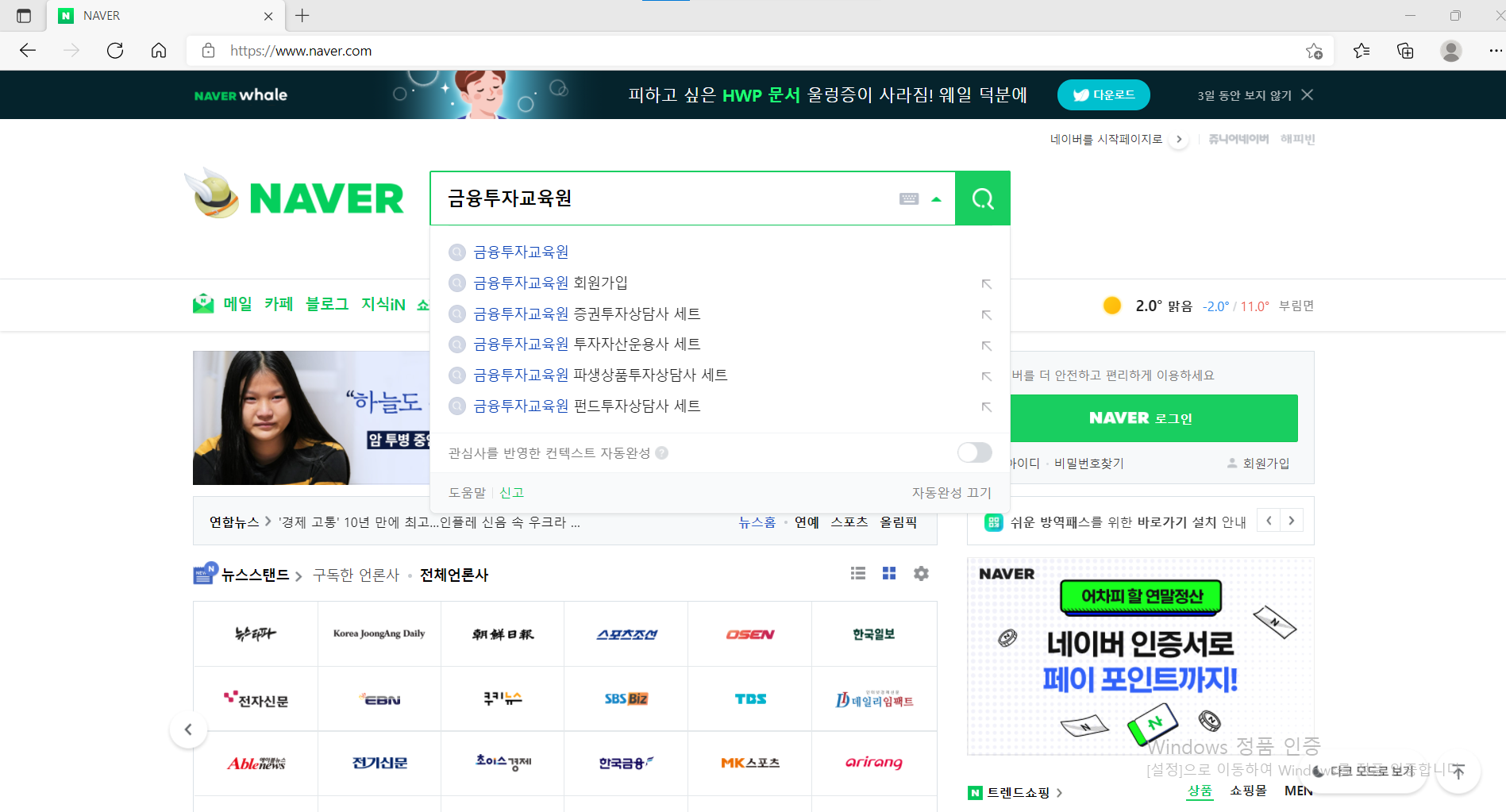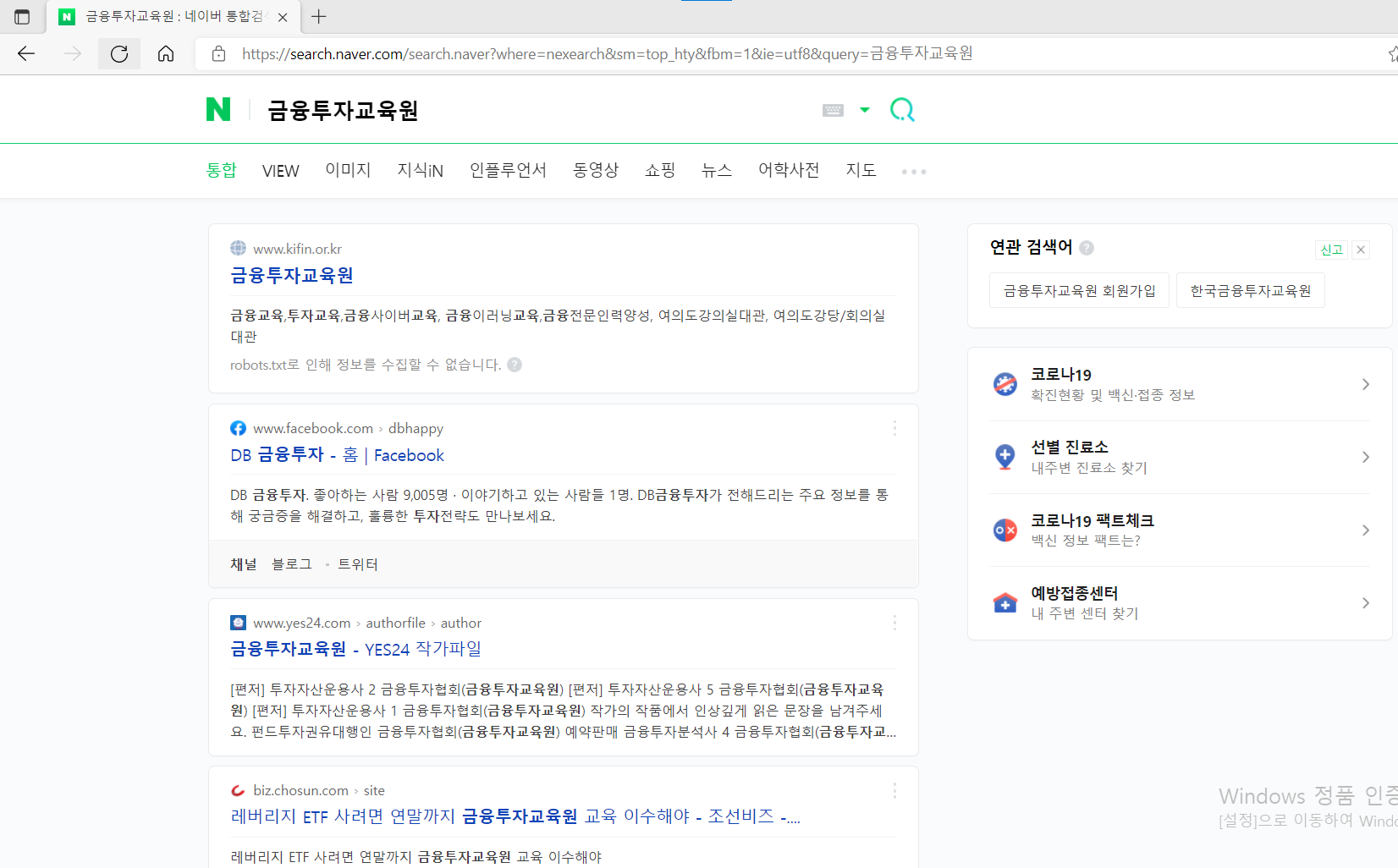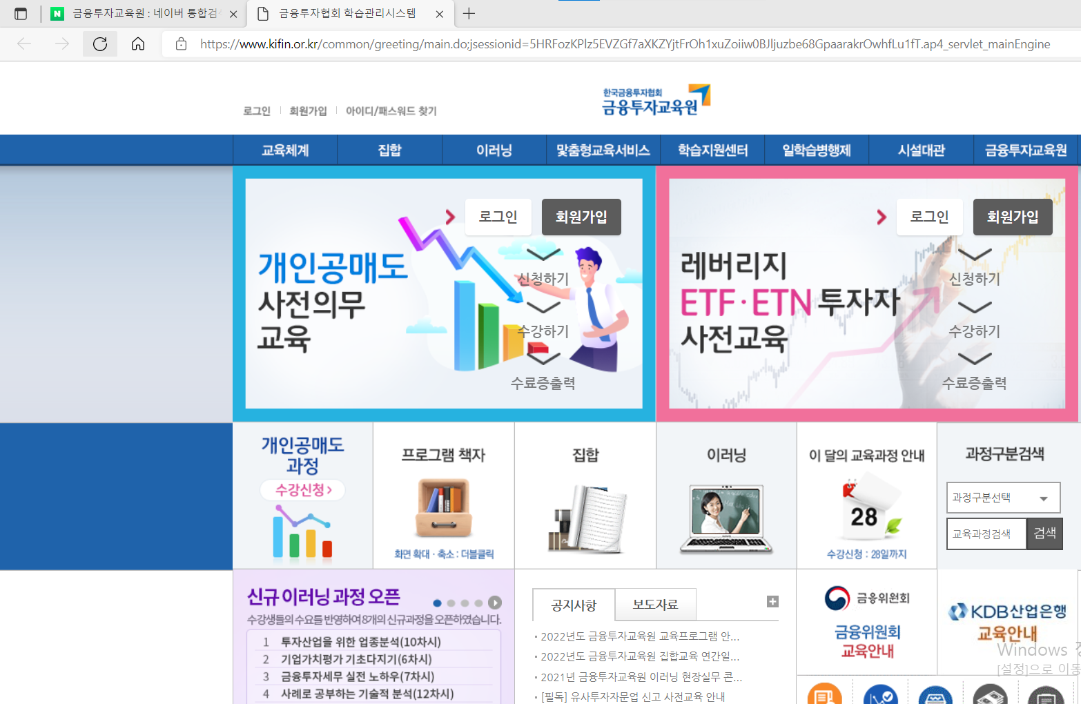처음 들어보는 금융투자교육원을 초록창 네이버로 찾아보았어요.