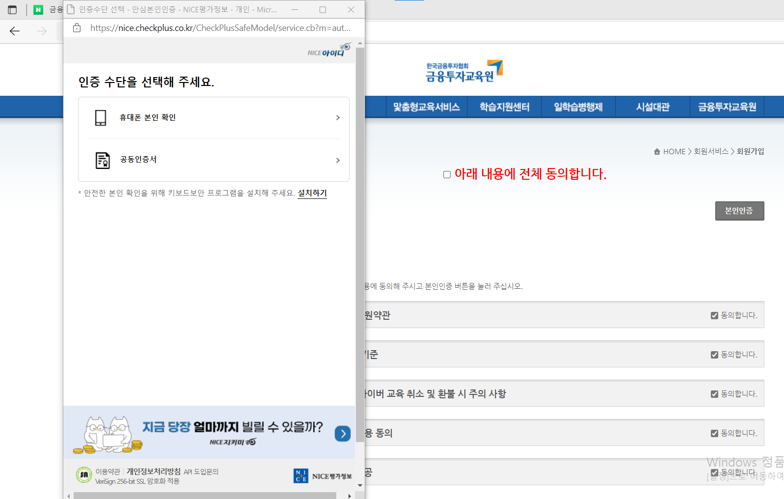 - 회원가입을 위해 본인인증을 받아야 하네요.