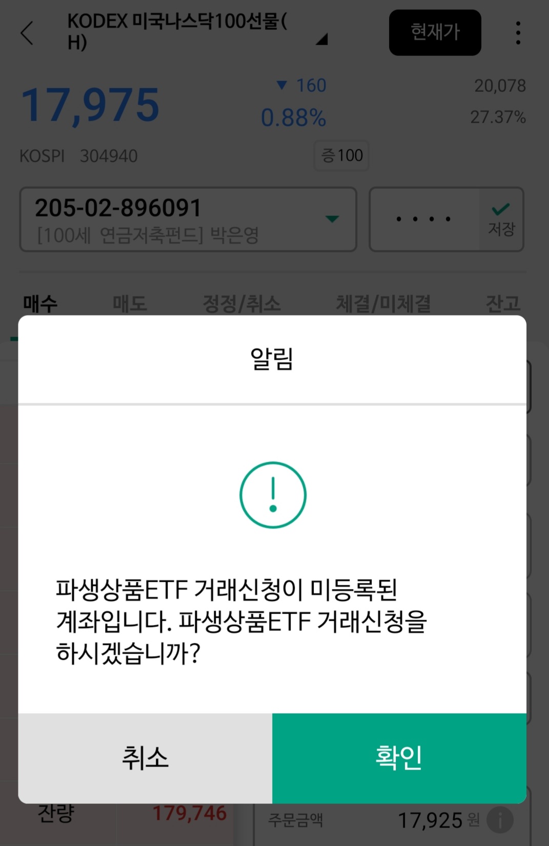 그런데 파생상품ETF는 거래를 신청해야 하네요.