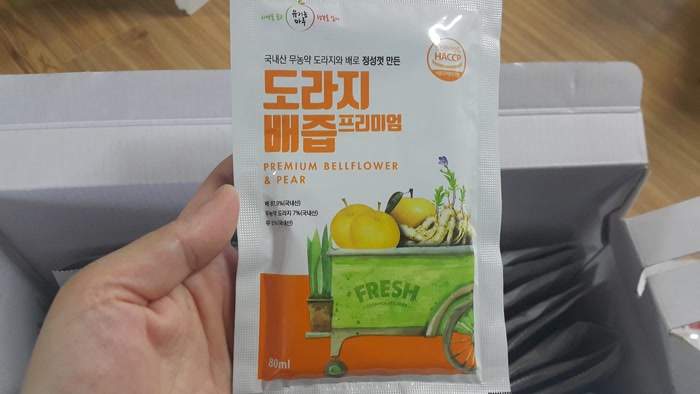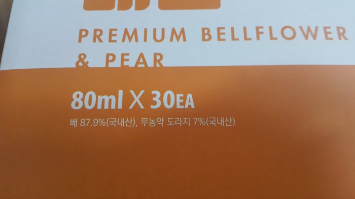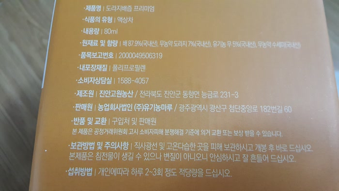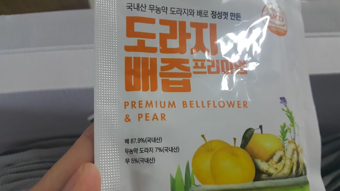 배 87.9%(국내산), 무농약 도라지 7%(국네산)가 들어 있다고 해요.
