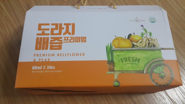 물을 넣지 않은 햇도라지 배즙으로 3년 이상 무농약 생도라지라고 해요. 물을 넣지 않았다고 해서 더 눈길을 끌었어요.