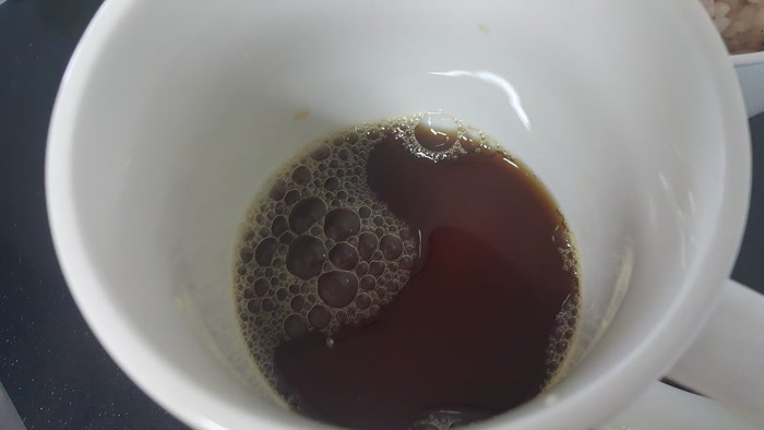 컵에 부어보니 양도 많지 않아서 부담도 없네요. 색은 진한 고동색이네요.