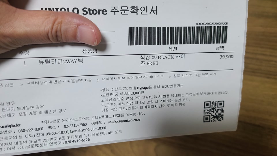 백팩으로 무엇을 살까 하다가 유니클로 유틸리티 2way백에 눈길이 가서 구입을 했습니다.