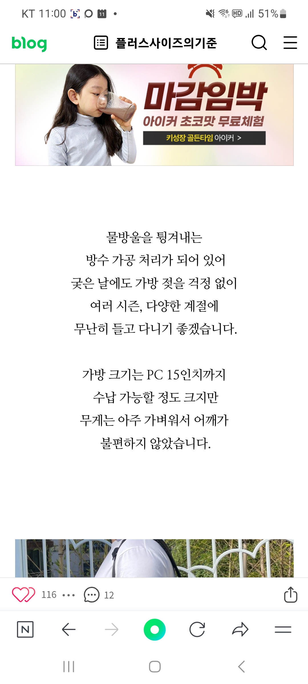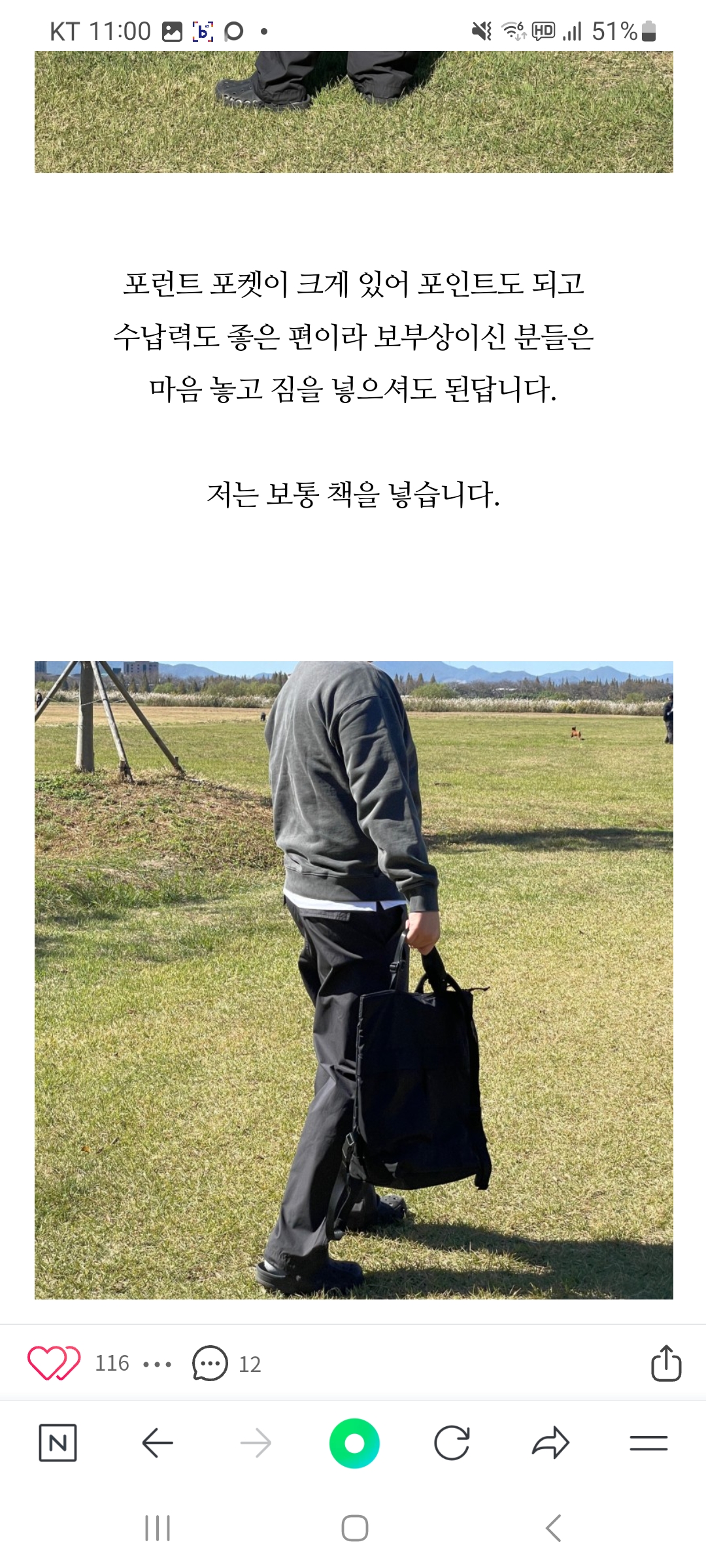 맬 수도 있고, 손으로 들 수도 있습니다. 그래서 편한 것 같습니다.