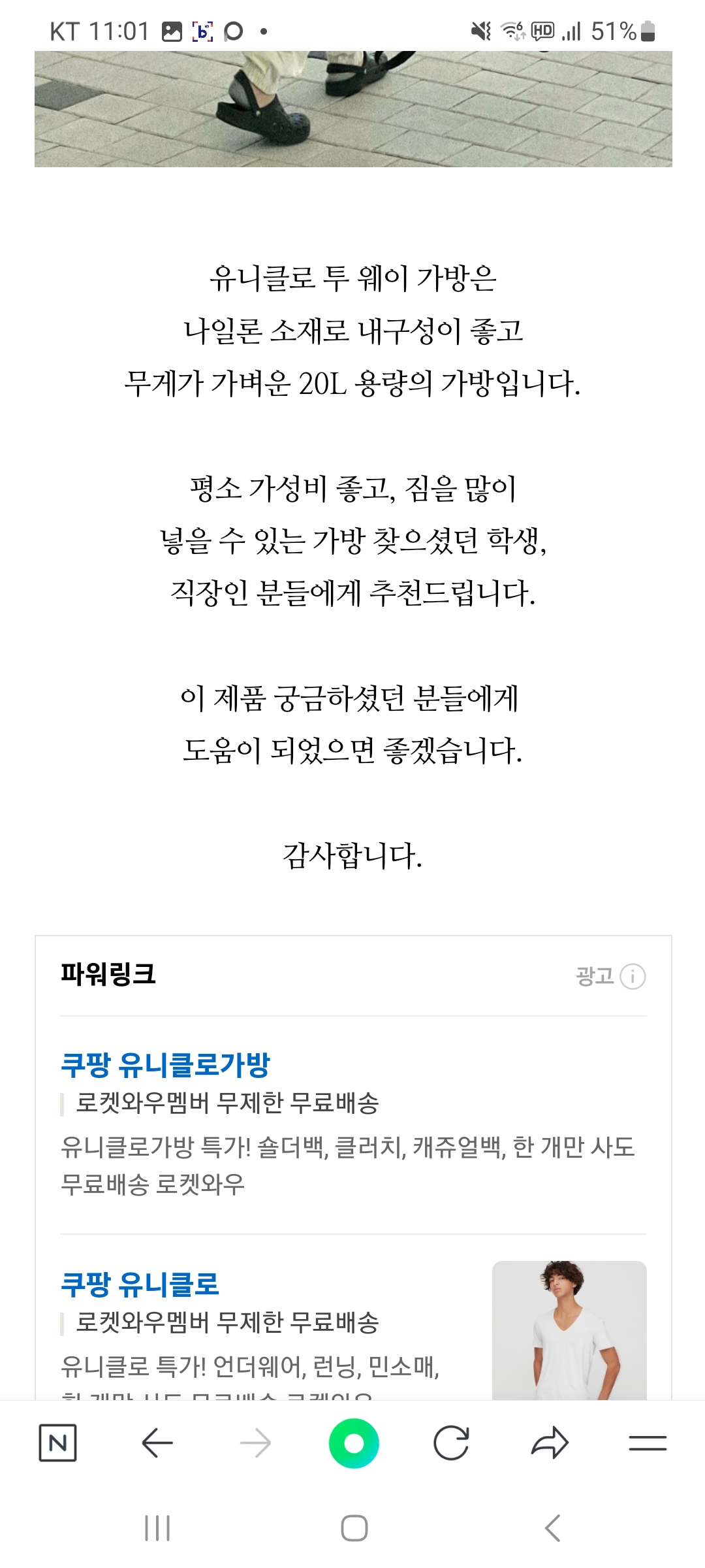 유니클로 백팩 유틸리티 2way백, 투웨이백에 대한 솔직후기, 내돈내산입니다.
