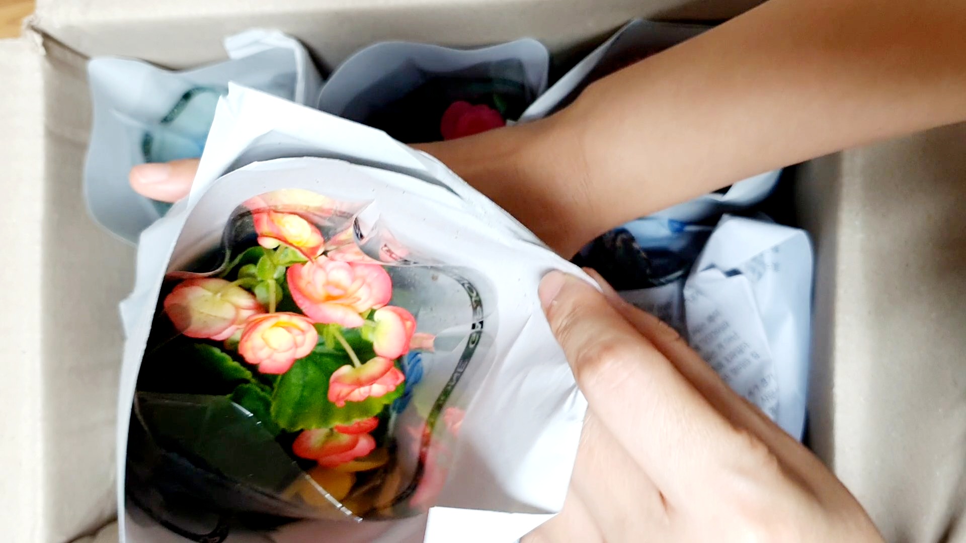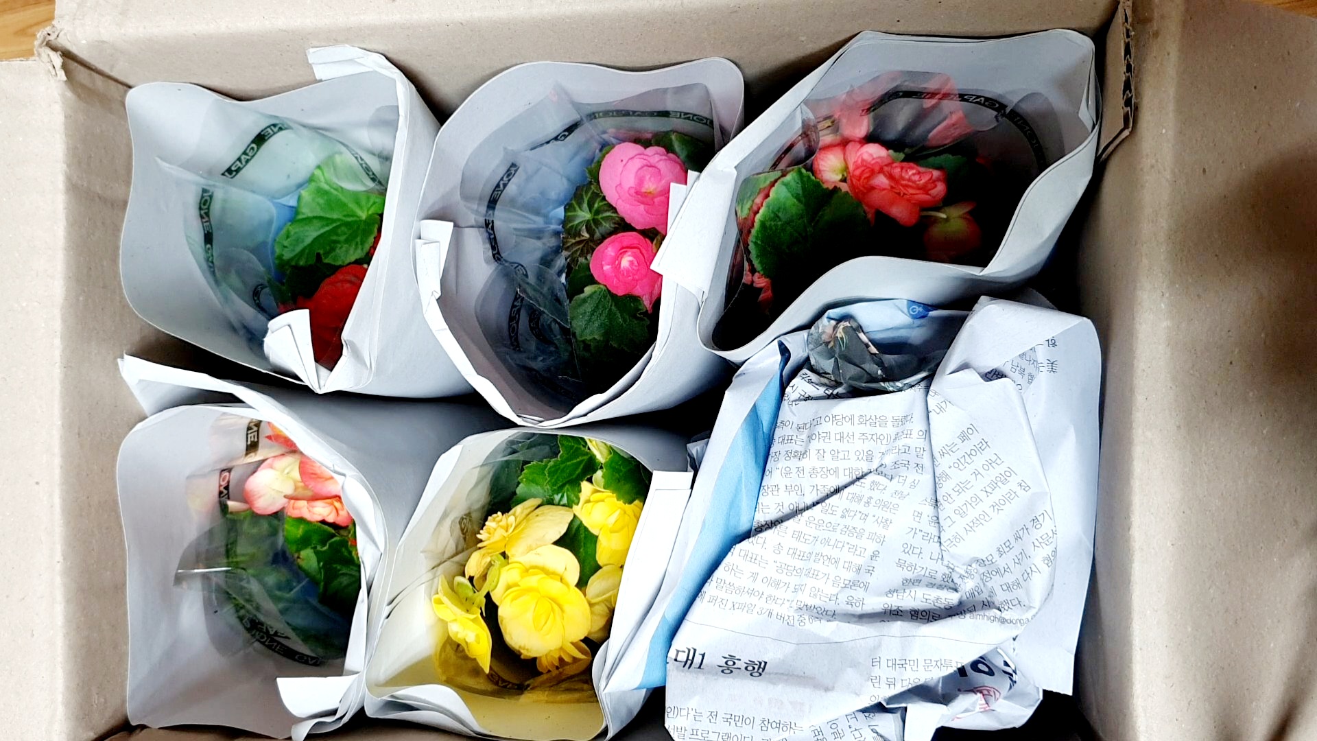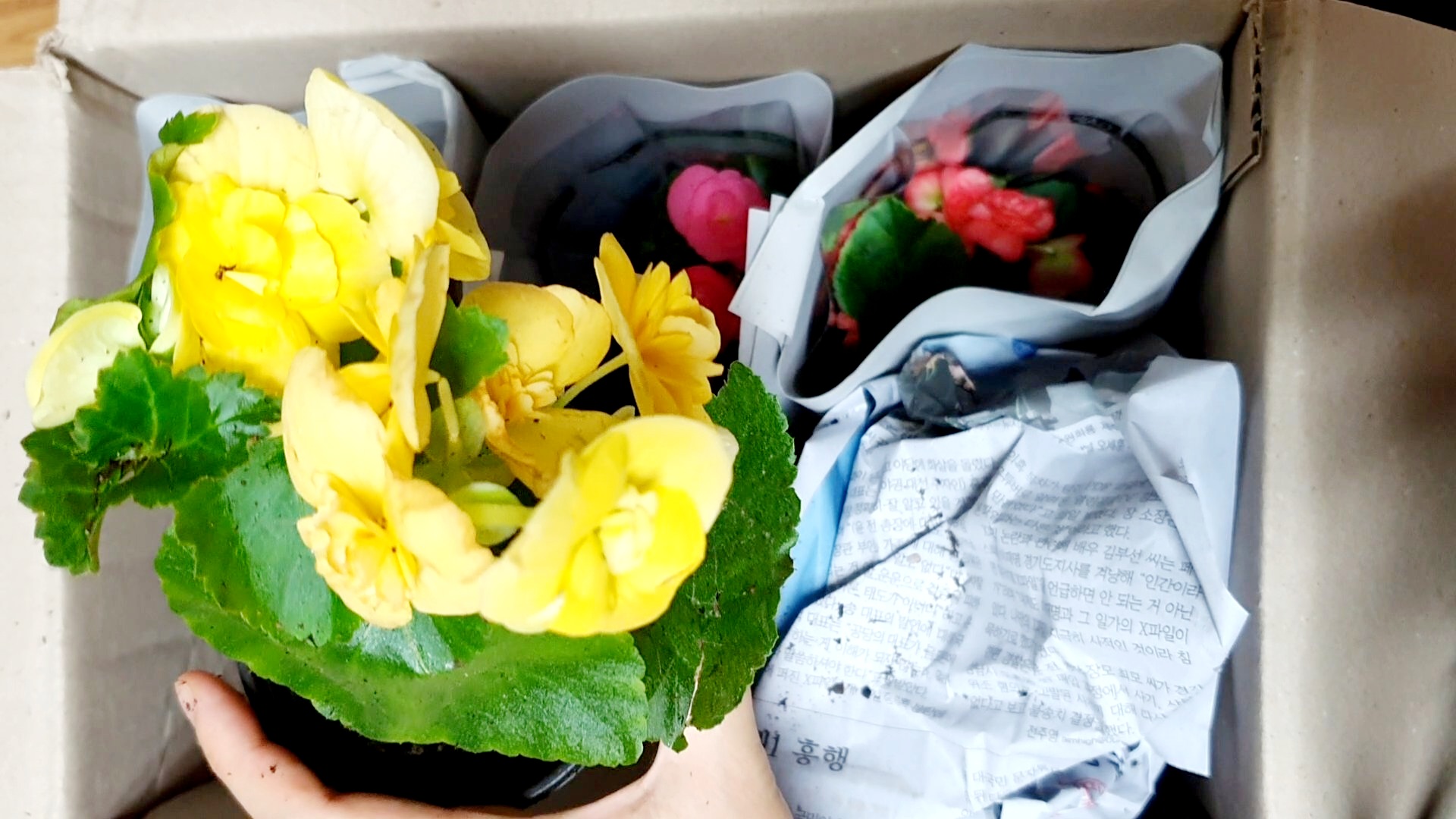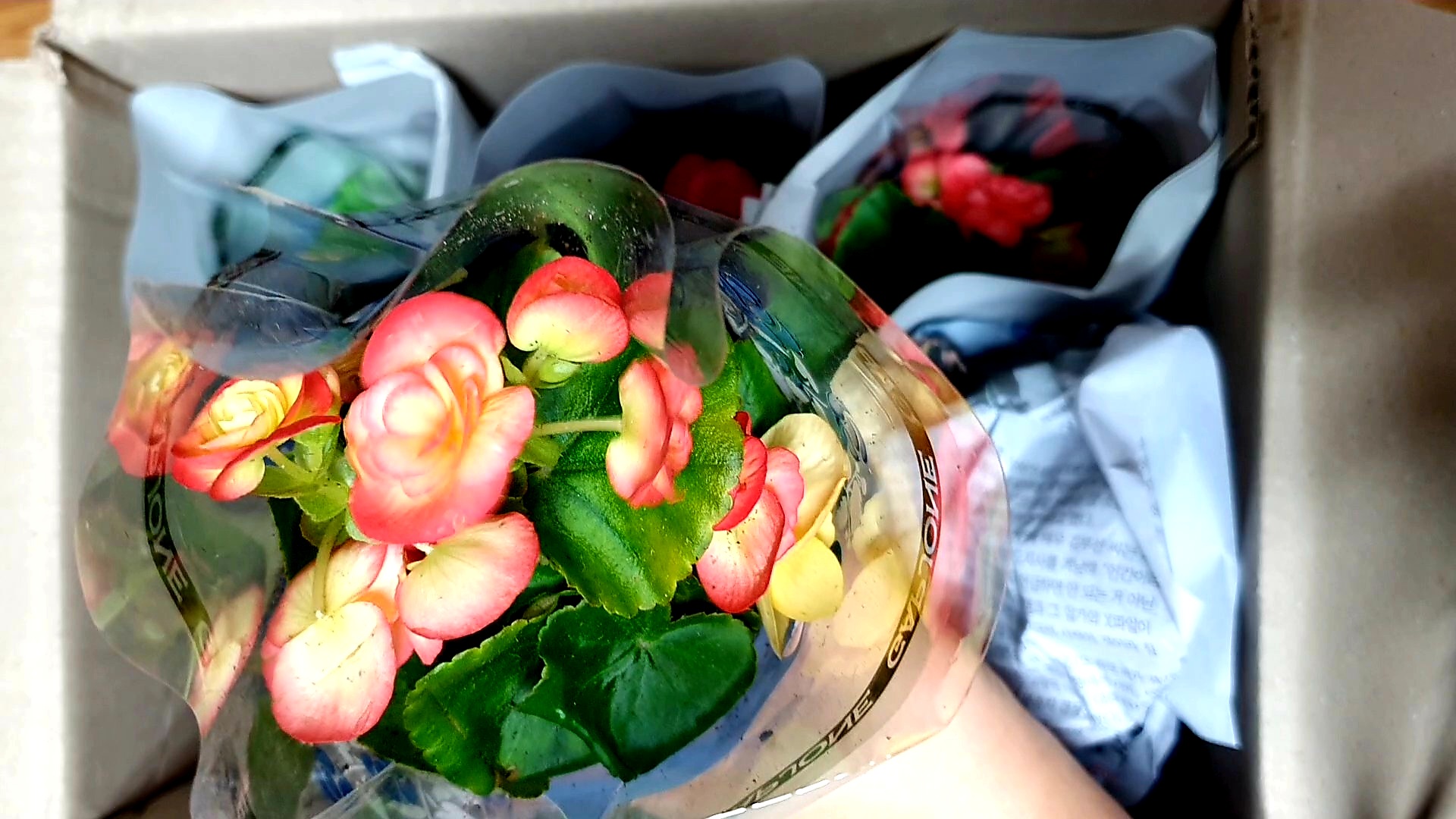 화원이나 꽃집에 갈까 하다가 코로나로 걱정이 많이 되는 상황이라 인터넷으로 장미베고니아 5종 랜덤화분을 구입했어요.