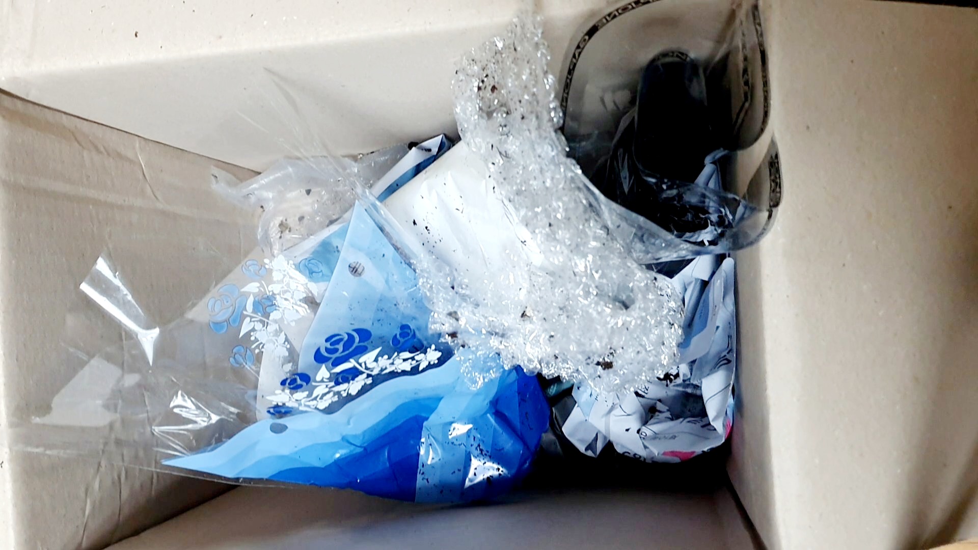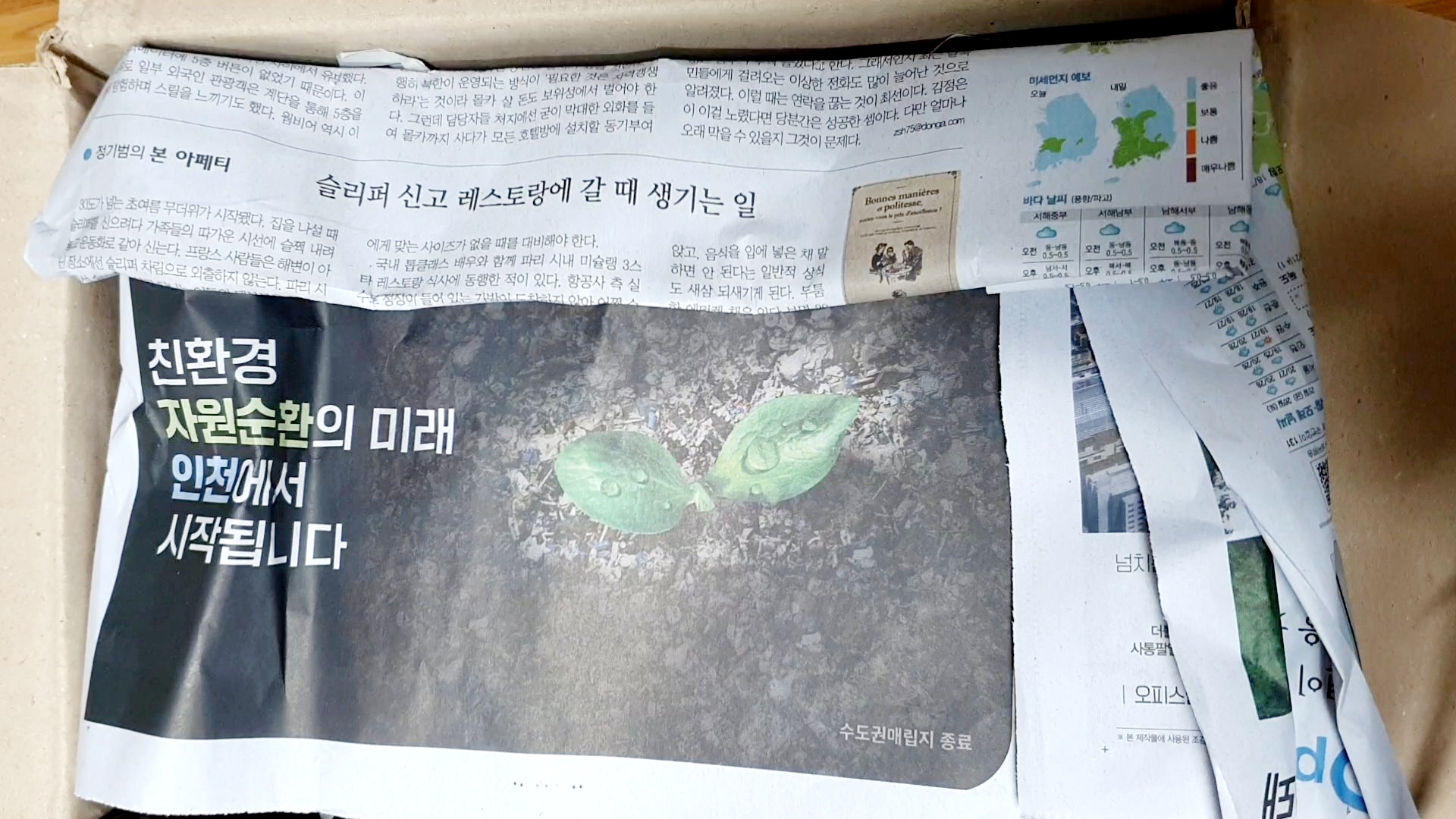 신문지와 비닐포장, 뽁뽁이까지 삼중으로 포장이 되어 있네요.