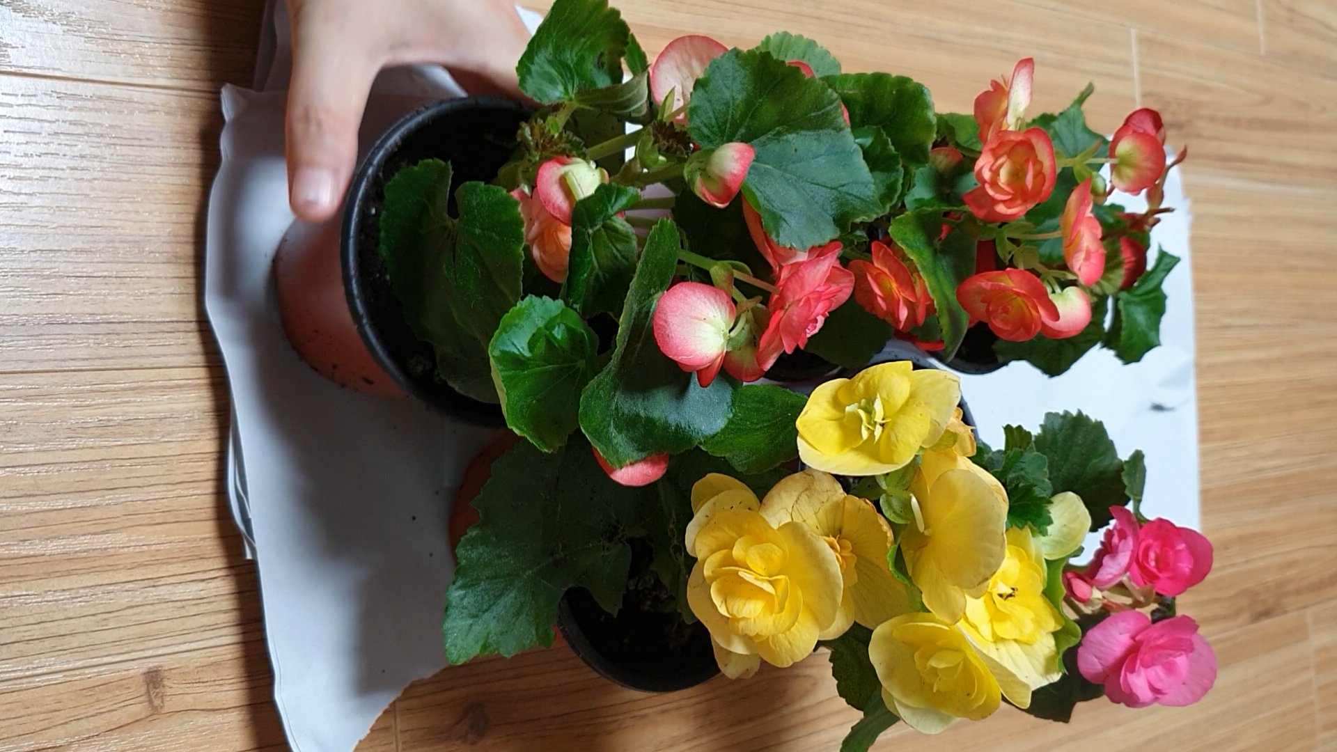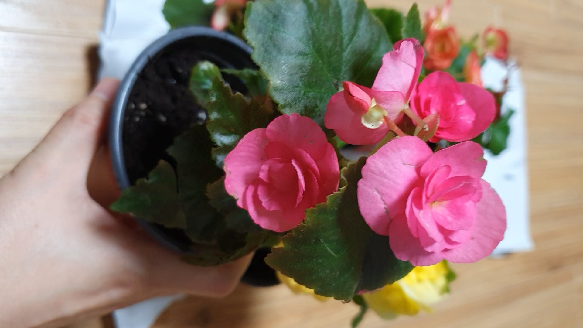 진분홍색 또한 예뻐서 눈길이 계속 가네요. 장미베고니아는 처음 사보는데 너무 예쁘네요. 꽃마다 색깔이 달라서 종류별로 모아서 키워도 좋을 듯 해요.