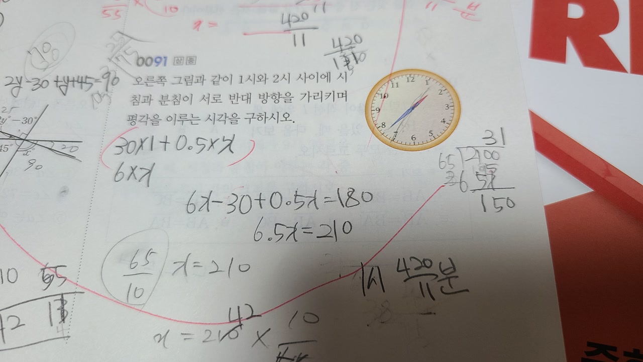시계에서 각의 계산 문제를 보면서 남편도 저도 우리 때는 저 문제가 없었다고 이야기를 하네요.