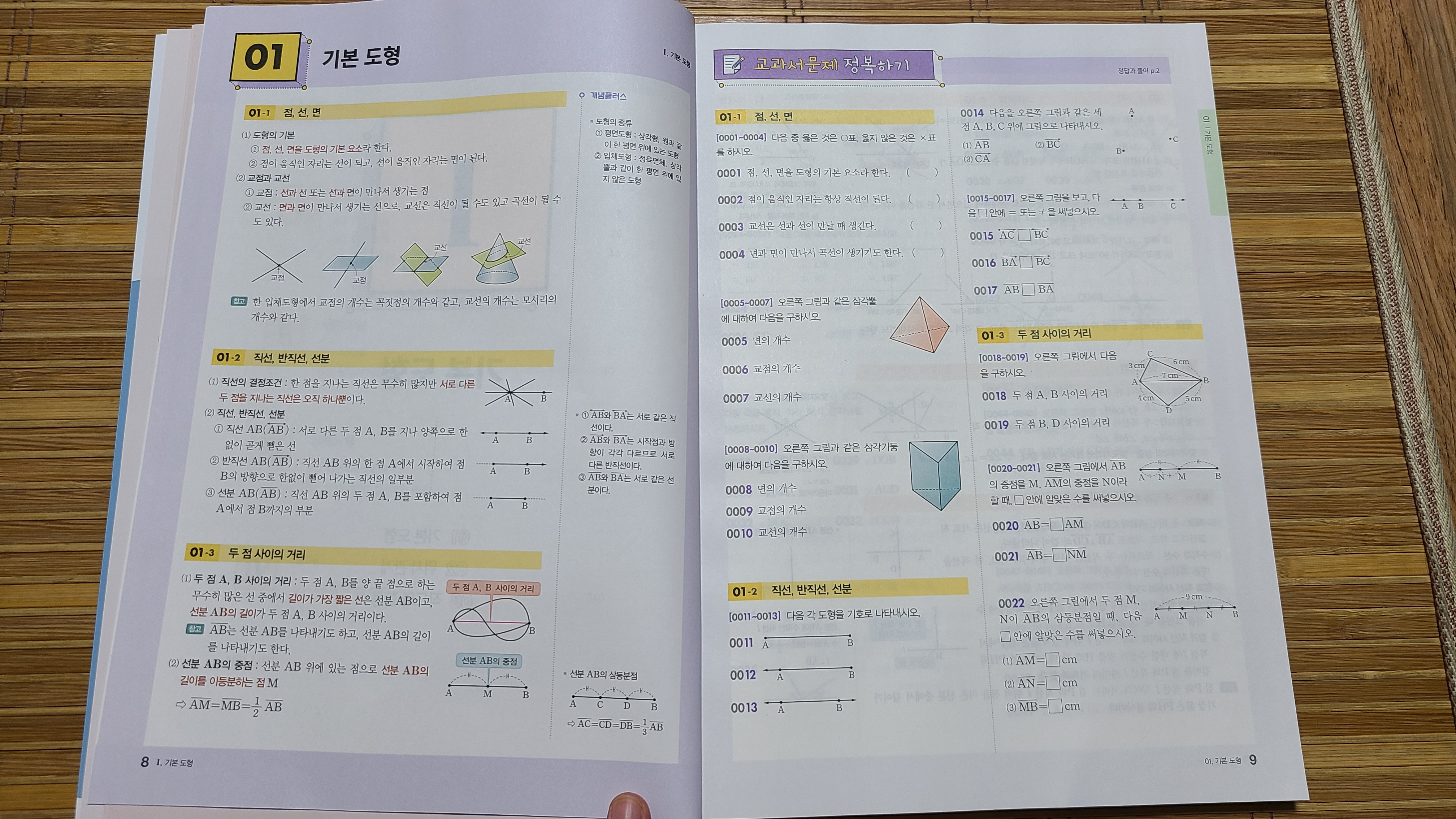 첫 페이지에는 개념에 대한 설명이 나오고, 옆 페이지에는 문제가 나옵니다.