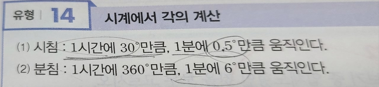 (1) 시침: 1시간에 30°만큼, 1분에 0.5°만큼 움직인다.