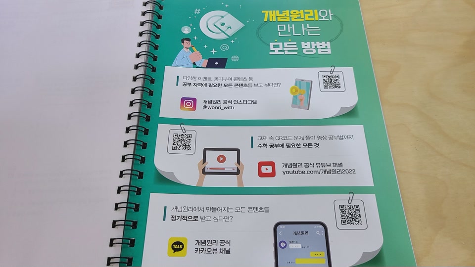 개념원리에서 만들어지는 모든 콘텐츠를 개념원리 카카오뷰 채널로 정기적으로 받을 수 있다고 합니다.