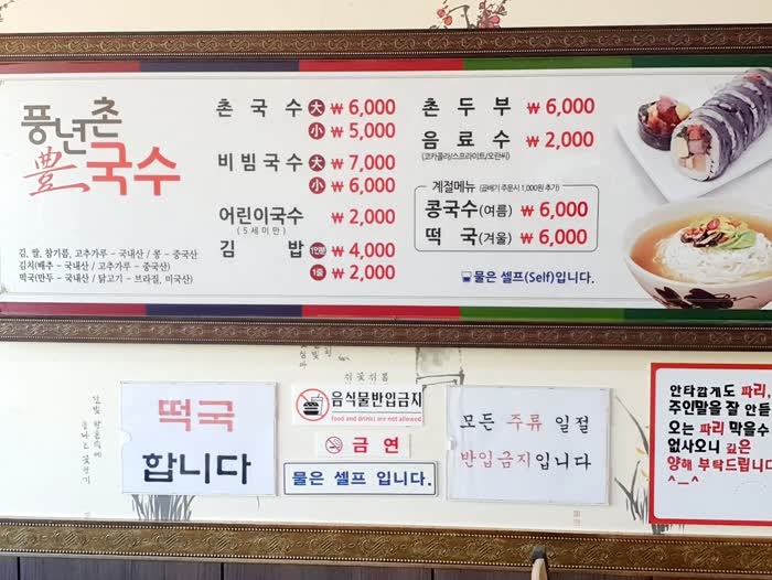 주차가 많이 되어 있는 곳이 맛집일 것이라며 풍년촌국수에 들어갔어요.