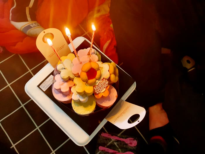 생일은 아니지만 아이스크림 케이크이기에 촛불도 붙였어요.