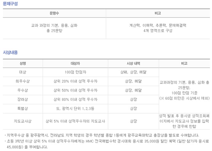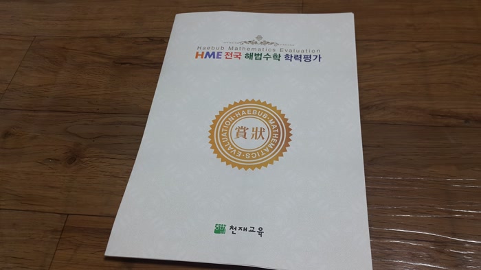 천재교육 HME 전국 해법수학 학력평가 시상내용이네요.