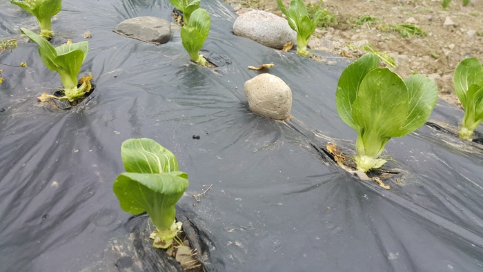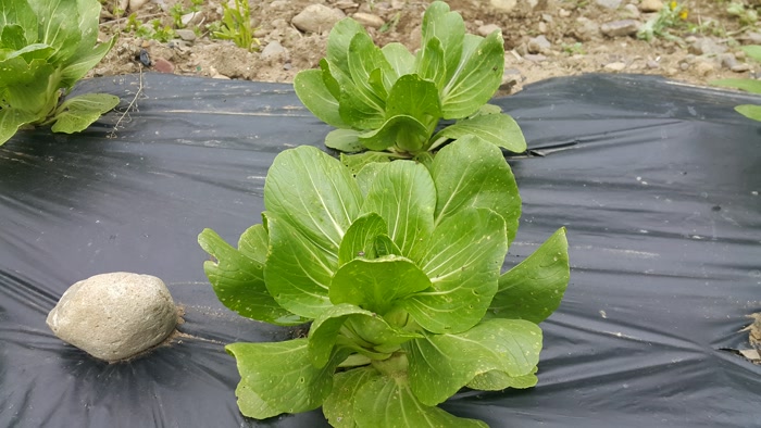 자갈밭에서 키운 청경채가 쑥쑥 자랐어요.