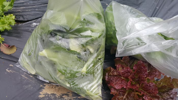 청경채 모종 10개에서 잎을 수확했는데 힌 봉지 가득하네요.