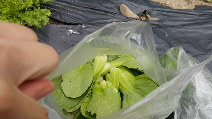 청경채 수확은 상추 수확과 같다는 것을 처음 알았어요.