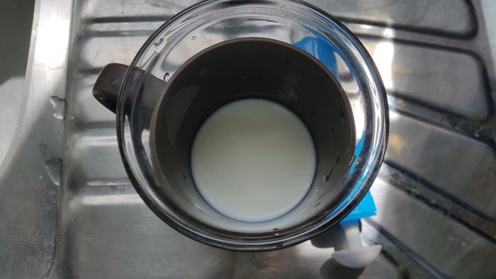 우유와 물을 같은 비율로 섞었어요. 만드는 것은 어렵지 않네요.