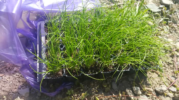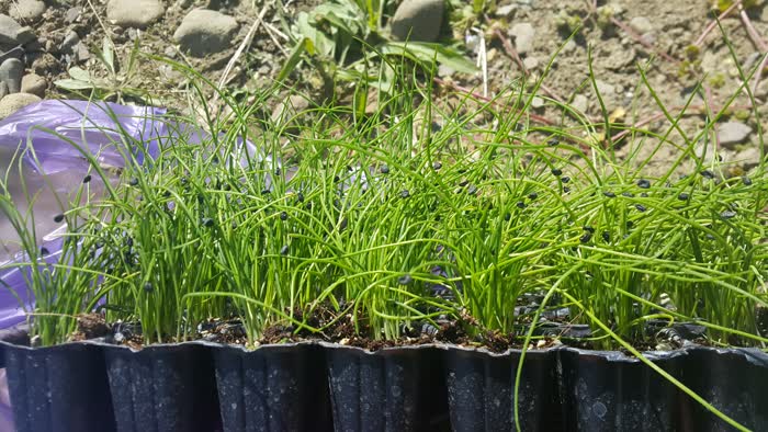 푸르름을 뽐내는 부추 모종.