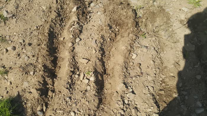 자갈밭이지만 부추(정구지) 모종을 심기 위해 바람을 이겨내며 밭을 갈았어요.
