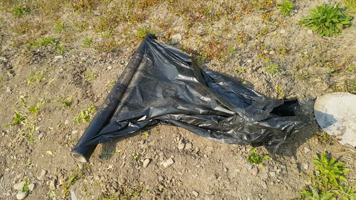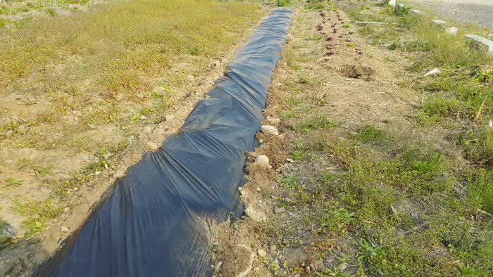 풀을 방지하기 위해서 비닐멀칭을 하기로 했어요.