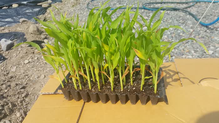 4월 하순에 심은 옥수수가 잘 자라지 않는다면 2주 뒤에 다시 옥수수 모종을 심으려고 해요. 옥수수를 심을 때 2주 정도 텀을 두면 시기를 달리해서 옥수수를 맛있게 먹을 수 있다고 해요.