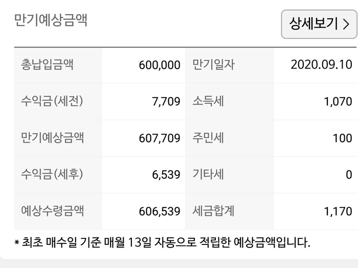 60만 원의 예상 수령금액은 606,539원으로 많지 않아요. 그래도 저축은 습관이니깐요. 이자가 작다고 하면 요즘 넣을 저축이 없어요.