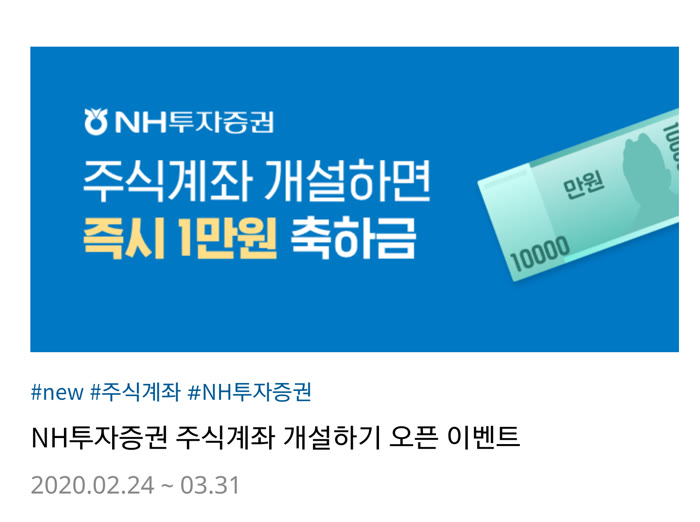 NH투자증권 주식계좌 개설만 해서 만 원의 축하금을 받아보는 것은 어떨까요?