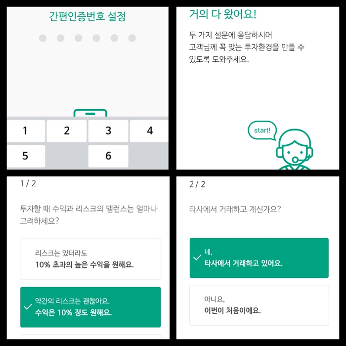 두 가지 설문만 하면 나무앱을 사용할 수 있네요. 증권사에 가는 것이 아니고, 집에서 폰으로 뚝딱 만들 수 있어서 너무 편해요.