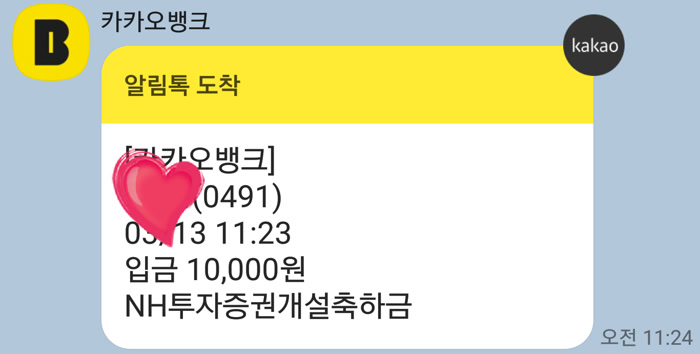* 카카오뱅크×NH투자증권 개설 이벤트로 카카오뱅크에서 NH투자증권 주식계좌를 개설하면 즉시 1만 원 축하금을 준다고 해요.