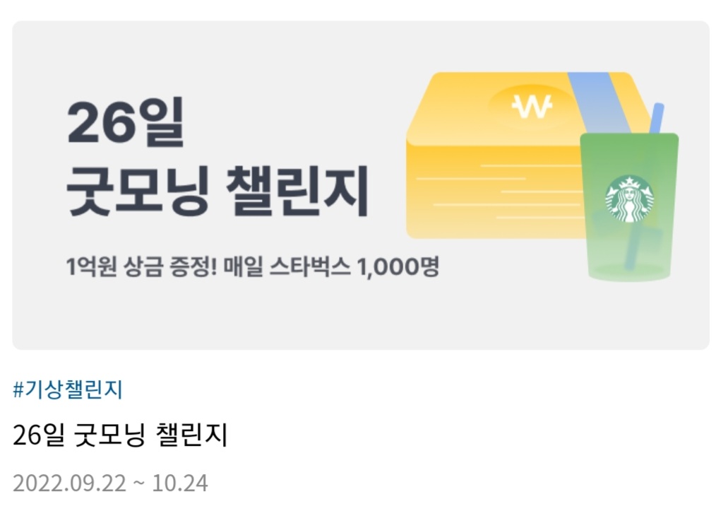 챌린지 달성을 한 사람 수로 1억원 상금을 나누어어 증정하고 매일 스타벅스 1,000명을 준다고 합니다.