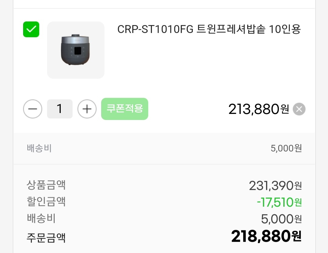 * 제 지갑과 함께하는 쿠쿠전기밥솥 CRP-QS1010FG 10인용 구입기이에요. - 제품명: 쿠쿠 CRP-QS1010FG 10인용 - 가격: 159,020원 - 구입방법: 인터넷 "어, 밥솥이 되지 않네." 일요일 아침 남편이 다급하게 이