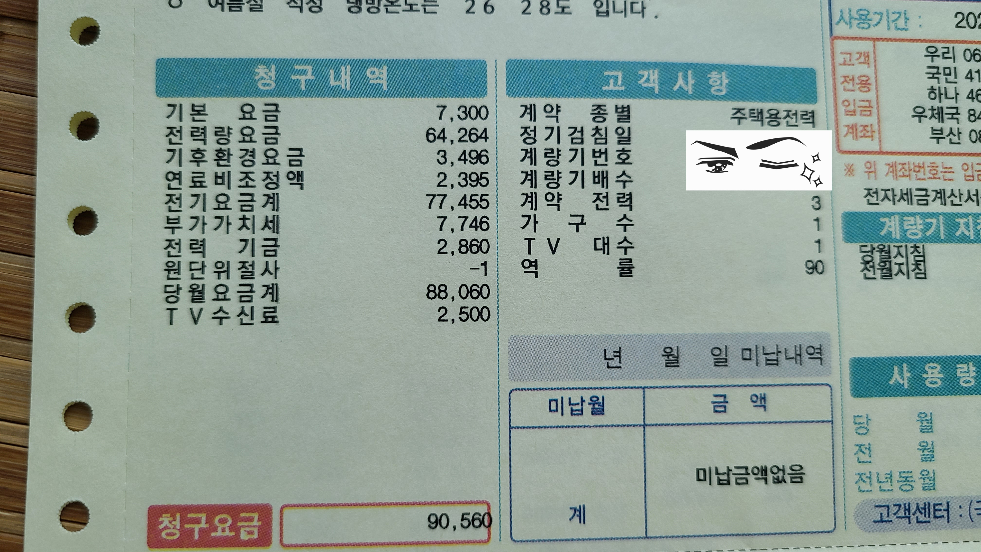 에어컨을 계속 켜고 지냈는데 9만원 정도면 양호하다고 생각을 했습니다.