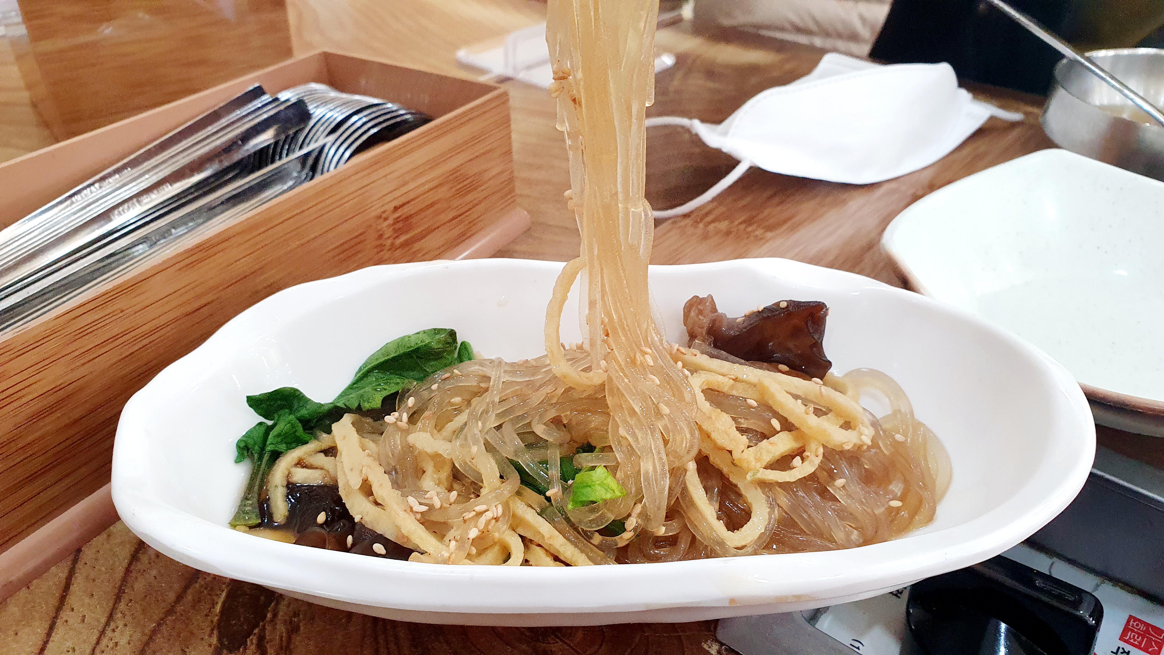 밑반찬으로 어묵이 많이 들어간 잡채가 나왔어요.