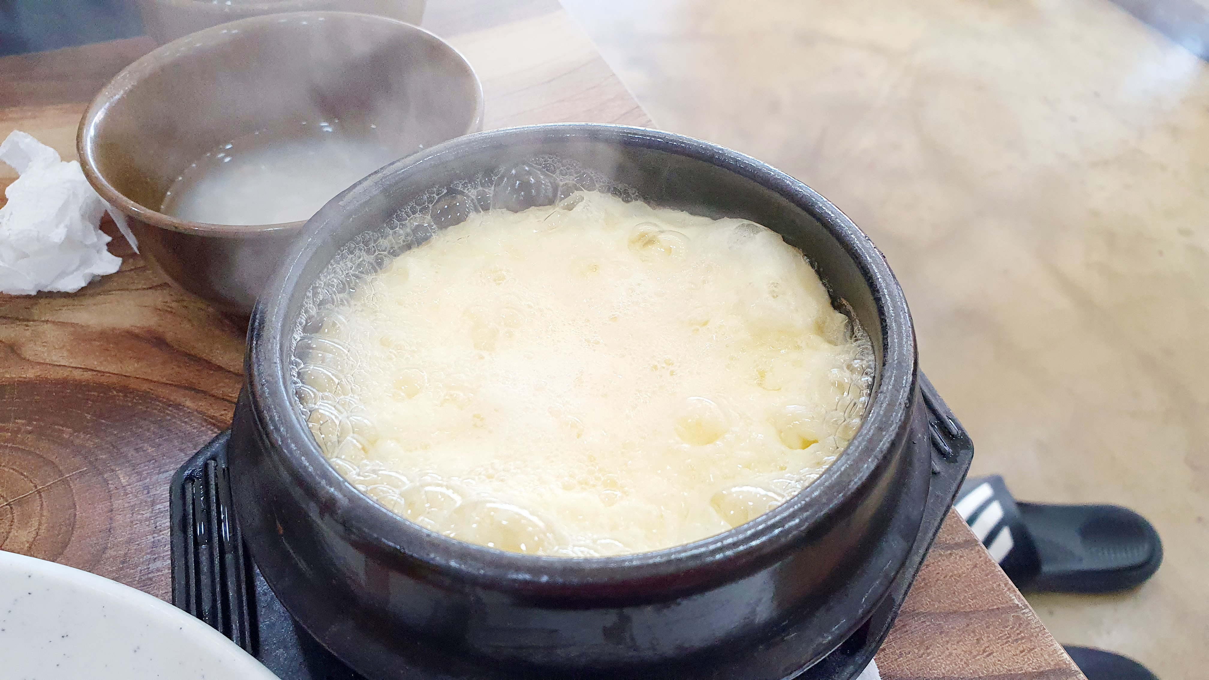 된장찌개는 우리와 맞지 않았어요. 단맛이 조금 나네요.