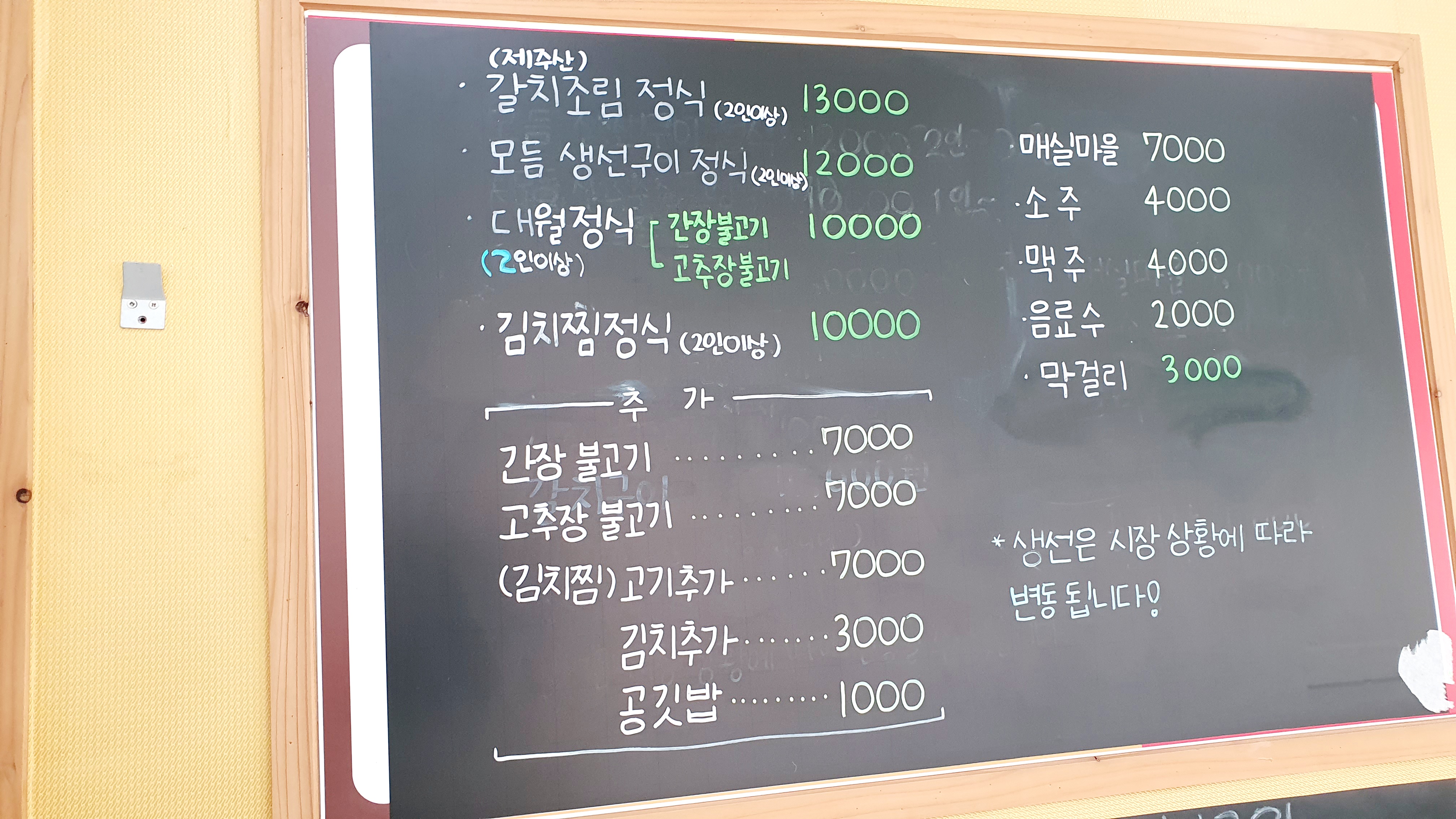 - 특징: 생선구이의 생선이 좋다. 간이 담백하다.