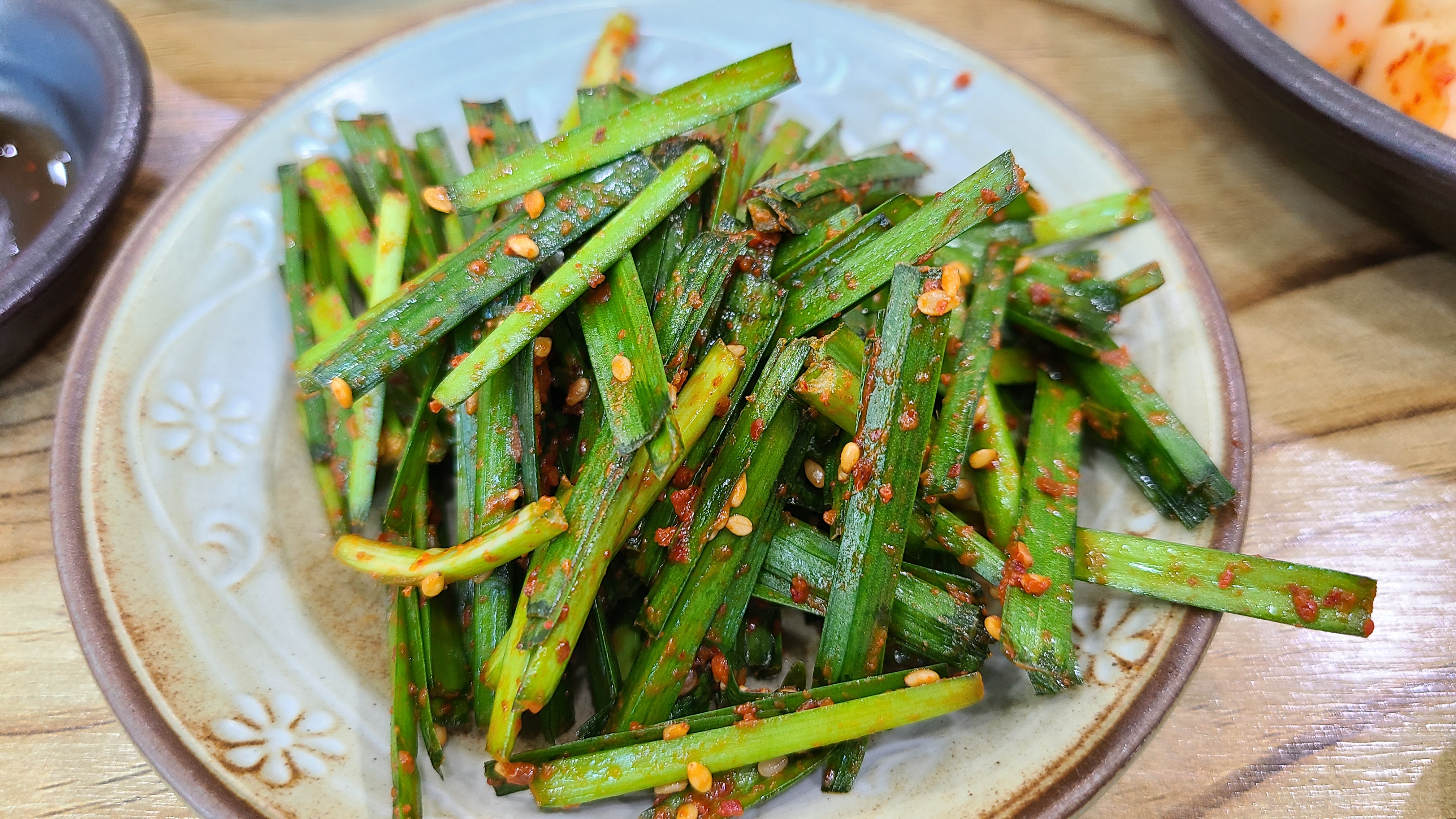 국밥에는 부추지요. 부추무침이 너무 싱싱해보입니다.