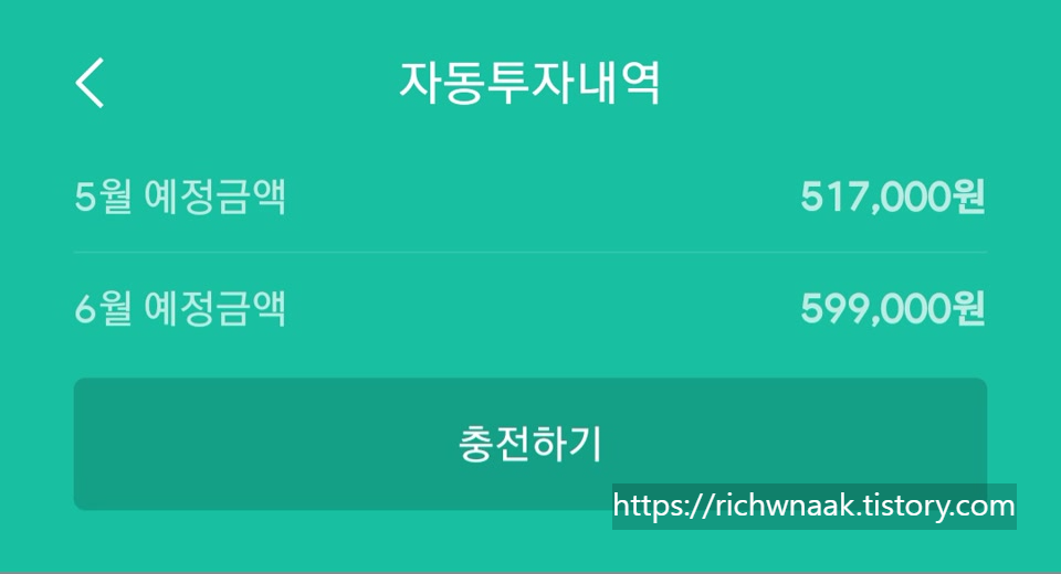 한 달에 60만 원 가량이 자동투자로 들어가고 있습니다.