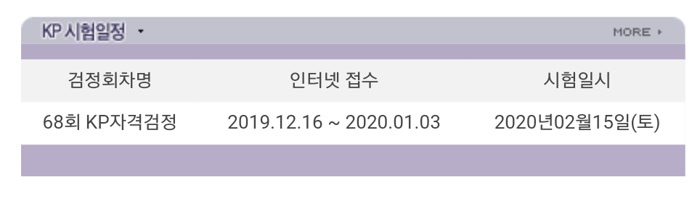 68회 KP자격검정을 보니 1월 3일까지 접수이고, 시험 일시는 2월 15일(토)이네요.