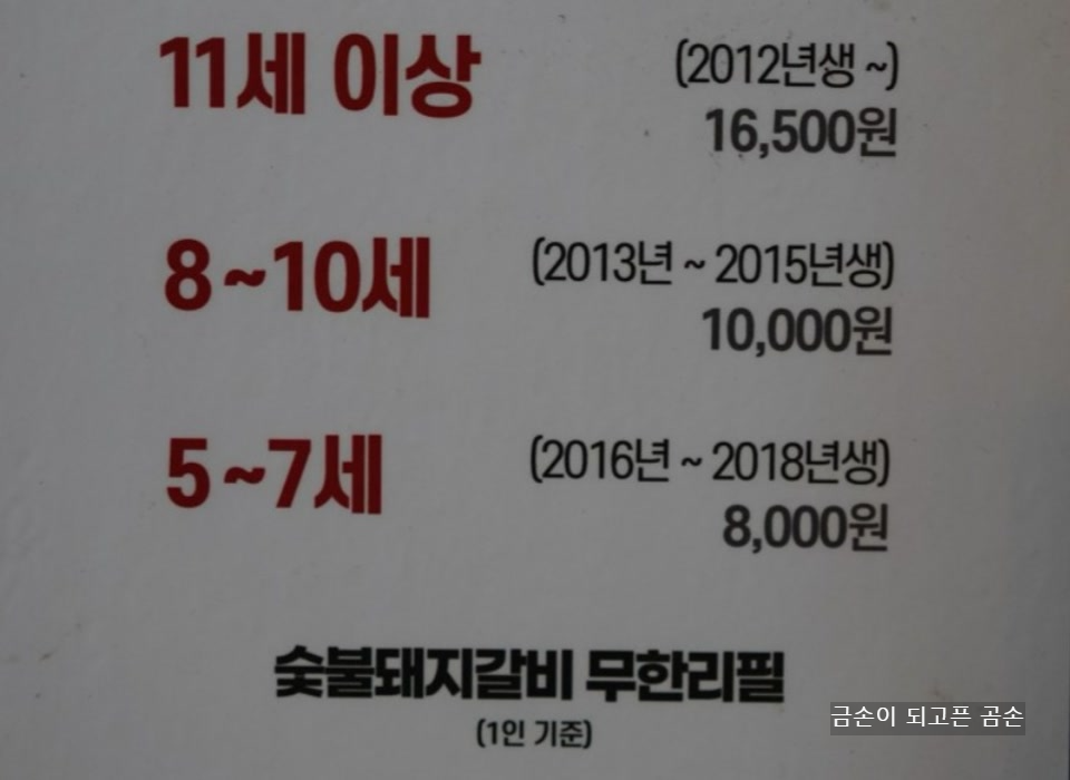 저희는 초등 4학년이라서 아들도 성인과 같은 가격 16,500원을 내었습니다.