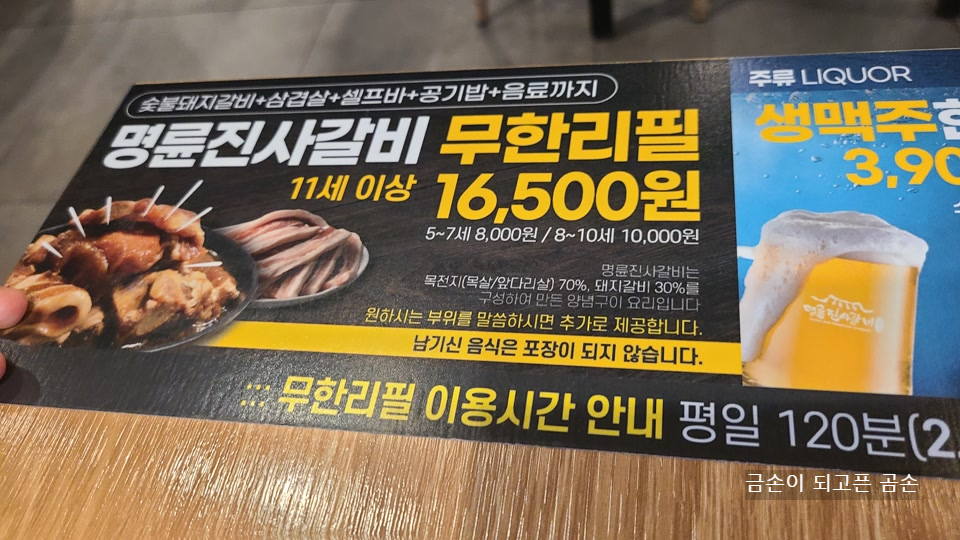 명륜진사갈비는 무한리필이기 때문에 그 부분에 대한 부담이 없었습니다.