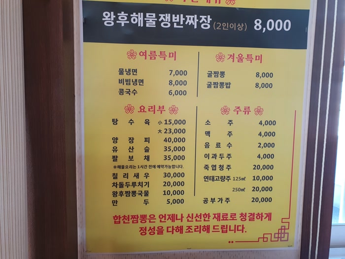 합천짬뽕 메뉴판이네요.