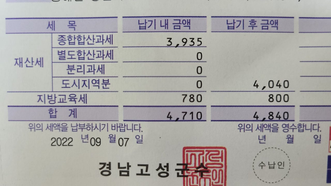 2022년 9월 재산세, 토지세를 납부했습니다.