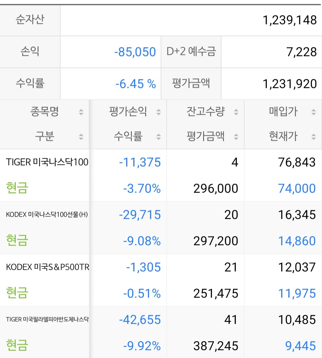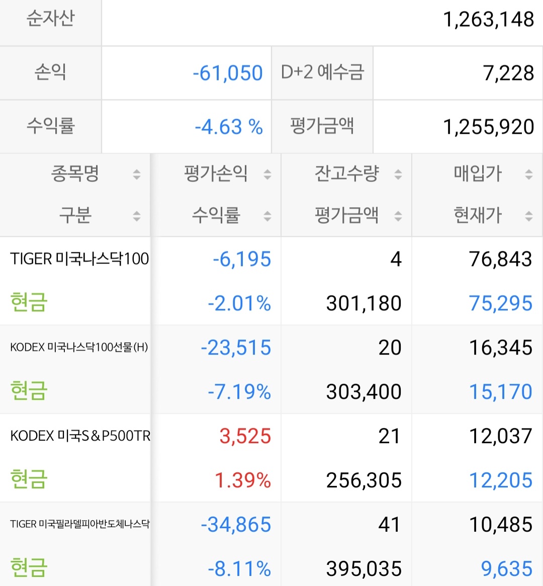 나스닥이 주저 앉다보니 마이너스 4%가 났습니다. 이제는 마이너스가 나도 '마이너스가 나는구나'라는 생각도 듭니다.